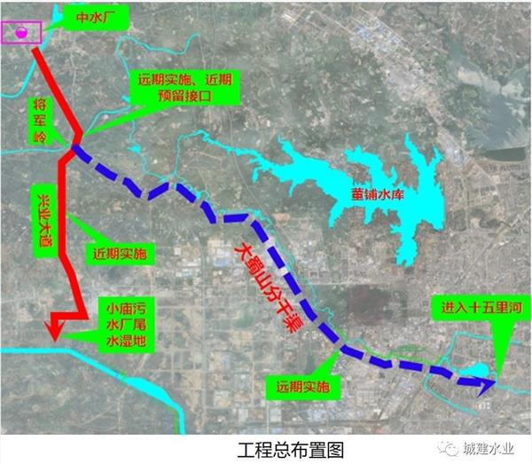經(jīng)建設(shè)單位和設(shè)計(jì)人員多次調(diào)研及現(xiàn)場踏勘,擬定了近期將長崗污水處理廠中水輸送至小廟進(jìn)行再生利用,遠(yuǎn)期將中水輸送至大蜀山干渠提供生態(tài)基流的近遠(yuǎn)期結(jié)合方案,本次近遠(yuǎn)期結(jié)合的方案實(shí)施。