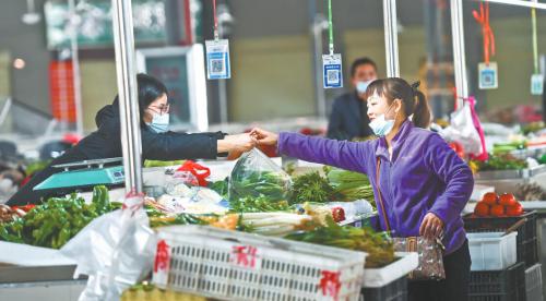 市民在問津菜場(chǎng)菜攤買菜。 長(zhǎng)江日?qǐng)?bào)記者 許魏巍 攝