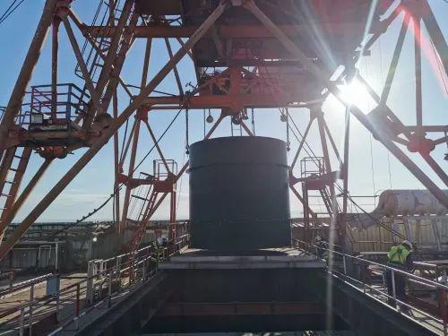 日前,隨著C68-67管節(jié)吊裝就位,電站500米級超深高壓豎井壓力鋼管安裝高度突破了海拔0米,從負海拔轉(zhuǎn)入正海拔施工。