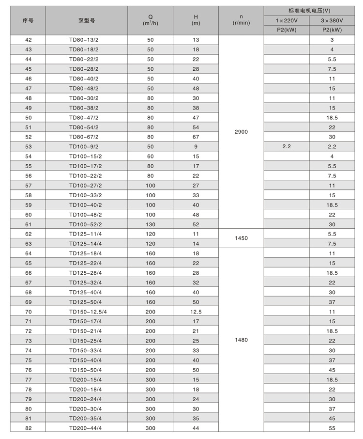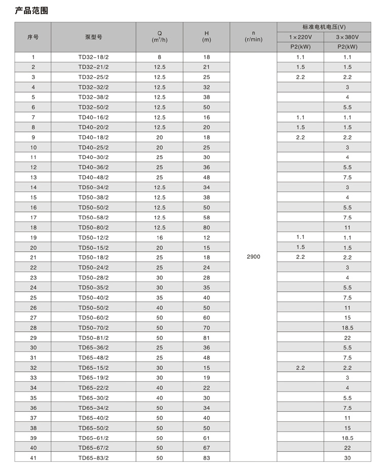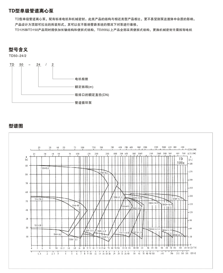 其中TD32-TD150口徑產(chǎn)品為加長軸結(jié)構(gòu),TD200-TD300口徑產(chǎn)品為便拆式結(jié)構(gòu),便拆式結(jié)構(gòu)采用集裝式機械密封,更換機械密封時無需拆卸電機。